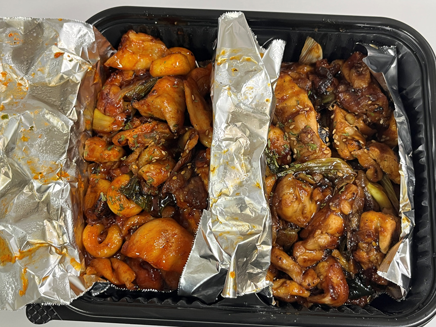 치킨만 먹기에는 간이 조금 세고, 나는 밥반찬으로 먹는걸 추천한다. 2인 기준 반반치킨 하나 시켜서 밥과 함께 두끼를 먹었다. 데워먹어도 맛이 거의 그대로라 괜찮았다.