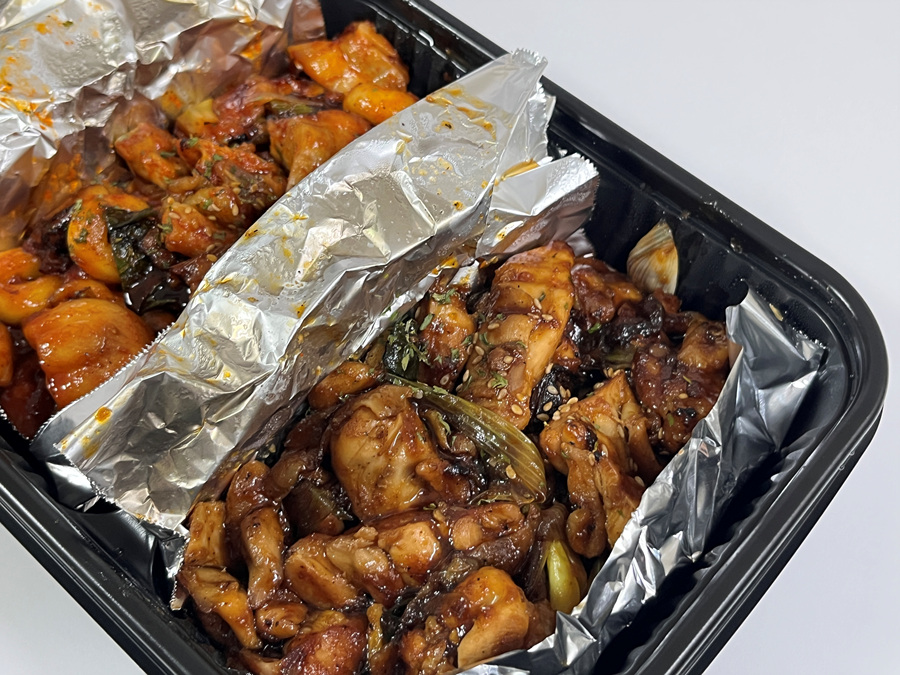 튀긴 치킨이 부담되는 사람에게 좋은 숯불치킨이다. 나도 처음 먹어본 기영이 숯불 두마리치킨의 순살 반반 숯불치킨을 시켜보았다.재주문이 가장 많은 메뉴라고한다. 2가지맛을 반반으로 선택할 수 있어서 좋았다.
